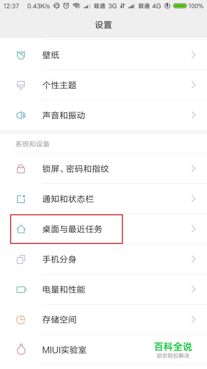 首先,打开MIUI桌面上的设置应用,在设置应用中,点击“桌面与最近任务”菜单选项。