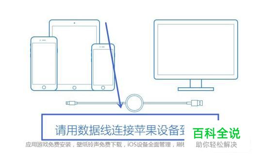 然后根据软件提示将我们的手机和电脑用数据线连接起来,如下图所示。