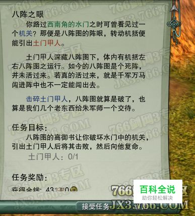 《八阵之眼》天策任务,八阵图的高御书让你破坏水门中的机关,引出土门甲人后将其击败,然后向他复命。水门中的机关在哪,在完成任务的过程中又要注意些什么,一起来看看吧