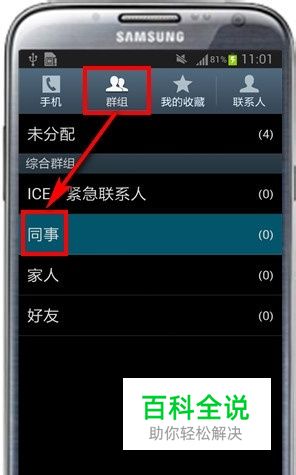 点击屏幕顶部的【群组】,选择一个组别,这里以【同事】为例。