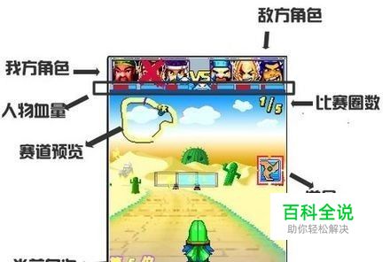 游戏操作: 左右方向键或数字键4 ,6 :控制赛车左右转弯 方向键下或数字键 8 :刹车 数字键5或确认键 :使用道具 数字键2 :选择道具 数字键0 :跳过游戏中对话