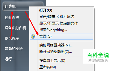 右键点击我的电脑或者计算机,点击右键菜单中的管理选项。