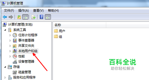 在计算机管理的页面中,点击左边导航栏中的本地用户和组这样一个选项。只需要用鼠标单击就可以了。