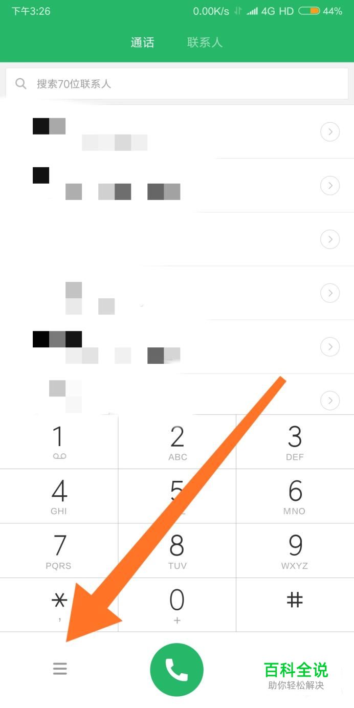 进入拨号界面后,然后点击屏幕左下角的图标,如下图所示。