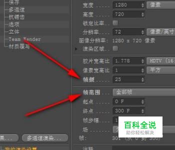 我们在制作动画前,先设置一下工程。把工程的帧率设置为25;把最大时长设置为300;再调出渲染设置的操作面板,点击“输出”,右侧展开“输出”设置选项,我们把帧频设置为25;帧范围设置为全部帧。然后,关闭操作面板。
