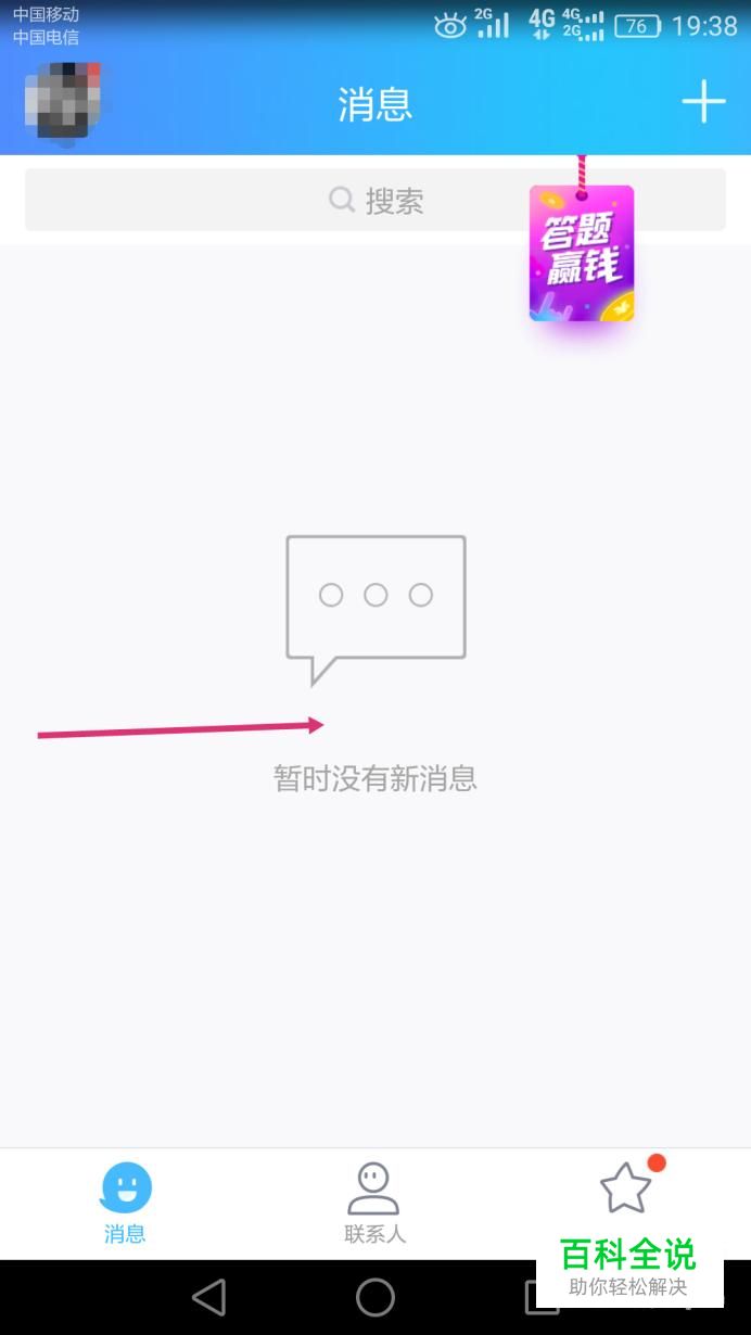 首先登录进入qq主页面,向右滑动页面。如图所示。