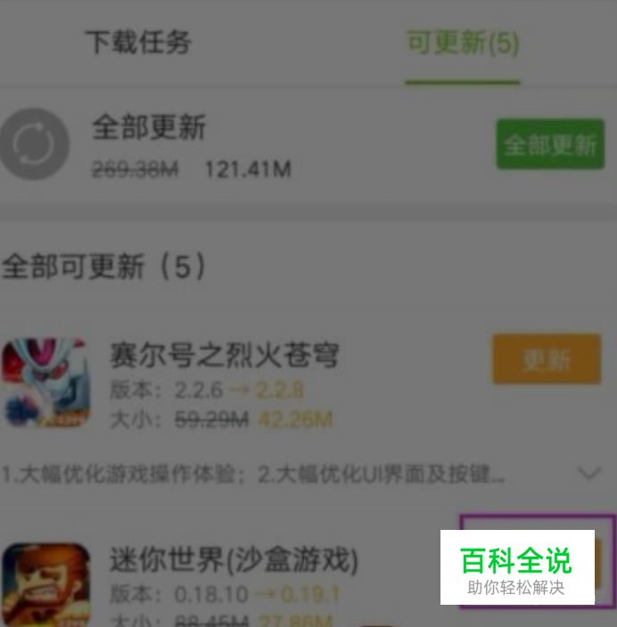 点击上面的"已忽略更新",找到"迷你世界",点击取消忽略,然后选择"更新"即可
