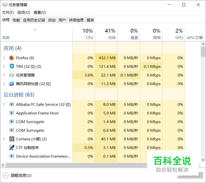在任务管理器页面中,点击进程页面。对目前正在运行的程序进行查看。