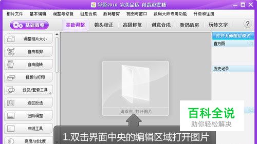 我们先双击界面中央的编辑区即可打开需要的图片(如图2),彩影允许我们同时打开宝宝图片和背景图片,一次性选中打开即可,很方便。