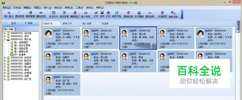 快速入门,编写一份电子病历 1、按“病人档案登记”键,会出现如下图所示的画面,进行病人登记。在“住院号”项目中输入患者的住院号,并按回车键,光标将跳到“姓名”项目中,依次完善患者的想关项目,输入完所有的项目后按“保存”键进行保存,保存后患者的信息将出现在左侧树状目录中。(输入正确的身份证号后按回车键就可以自动计算出患者的出生日期和年龄)