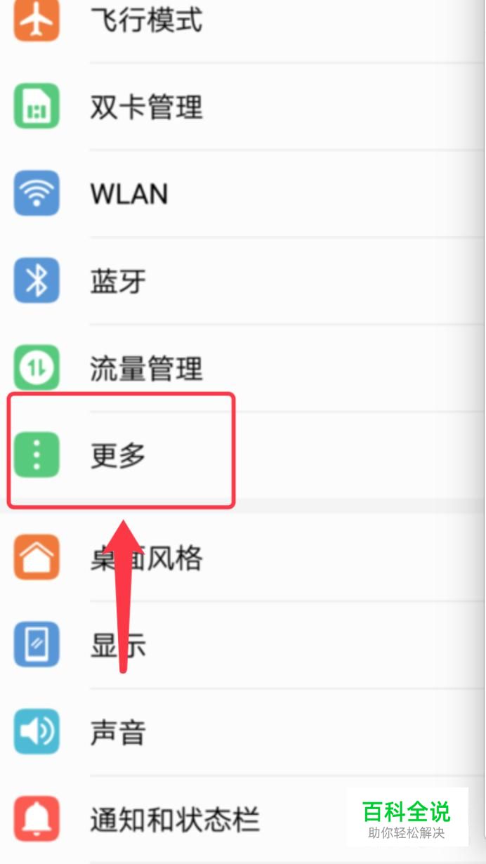 在我们手机的桌面上找到设置的按钮.点击更多的选项进去.