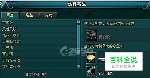 一、打开背包,就可以看到炼丹按钮,打开炼丹界面,可以看到炼丹合成的分类,可以合成药品类、增益类、特殊类、内功类四种。 二、炼丹需要材料和配方,必须通过其他途径进行材料收集和学习配方,这样就可以在炼丹系统里进行炼制。每种道具炼制时需要不同的材料和时间,炼制的数量越多,需要炼制的时间也会久点,也可以通过花元宝加速炼制过程。 三、玩家可以通过采集,采集部分材料,然后进行炼制,炼制出来的道具有很多用途,不但可以炼制经验丹,双倍经验符等,而且可以炼制内功玉佩的升级经验丹,让你更快提升实力,让你玩的更加愉快。