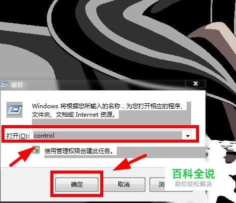 按住“Windows + R”键,弹出运行窗口,在运行窗口输入“control”进入控制面板,点击“确定”