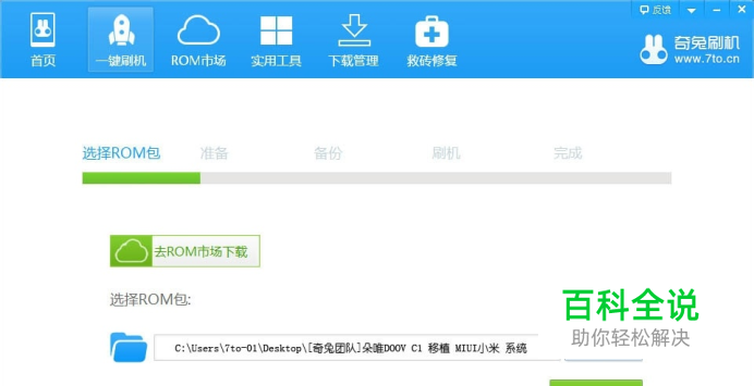 朵唯DOOV C1 ROOT 刷机教程分享 1.我们先去下载一个 奇兔刷机 软件 2.再连接手机线,打开USB调试,选择一键刷机 3.此处可以选择ROM刷机包,也可以去市场下载 4.ROM市场中还有各种各样,丰富的ROM刷机包资源 5.点击下一步等待自动刷机中..,期间无须其他操作 6.出现下图就刷机成功了,就是如此简单 7.另外奇兔刷机软件还提供了各种实用功能,让你以后遇上什么问题都轻松搞定