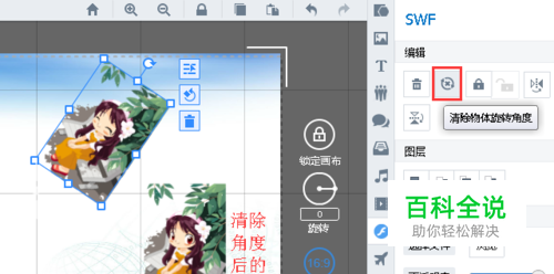 清除物体旋转角度。选中元素对象,点击编辑下方的 “清除物体旋转角度” 图标按钮,便可清除。