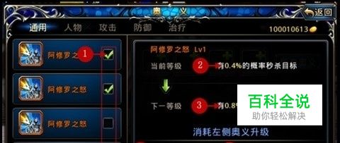 神之刃中,升级奥义是一个非常方便的事情,不过为了广大新手伙伴们能够在游戏开测前就对游戏有一定的了解,小七就和大家说说升级奥义的详细内容吧! 1. 点击勾选消耗的材料奥义,最多可以勾选5个 2. 奥义当前等级效果 3. 奥义升级后效果 4. 升级奥义成功率,成功率与升级奥义品质,材料奥义品质以及奥义个数均有关系,但奥义升级成功率最大为60%,已经达到了就不要在浪费材料奥义了哟 5. 升级奥义消耗金币 6. 升级:点击开始升级