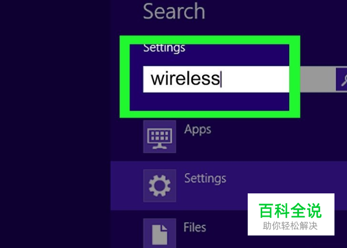 输入“无线网络连接”。当你开始输入时,会在屏幕的右上角打开一个搜索栏。