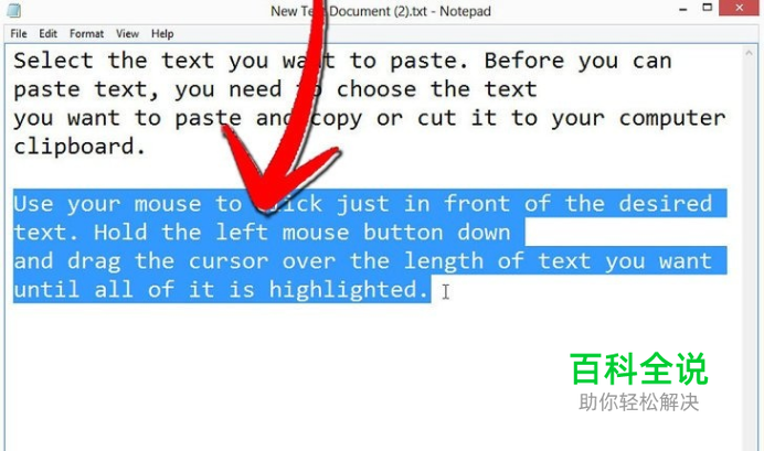 选择要粘贴的文本。在可以粘贴文本之前,您需要选择要粘贴的文本,然后复制或剪切到电脑的剪贴板。 使用鼠标单击刚刚所需文本的前面。按住鼠标左键并拖动光标直到您想要的文本全部被打亮。