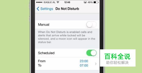 设定时的请勿打扰。如果你想设置请勿打扰模式在特定的时间开启,你可以设定它的时间表。打开设置,向下滚动到请勿打扰选项。点击它,打开配置选项。 切换计划滑块设置为ON。时间会出现在滑块下方,然后你可以设置什么时候开启什么时候关闭。您只可以设定时间段,请勿打扰模式将会在每天的这个预定时段开启。
