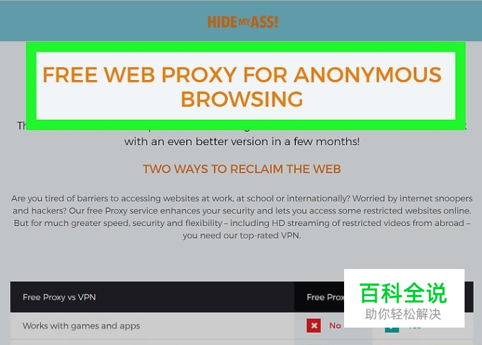 选择URL 地址框。在代理站点的地址栏中输入您要访问的网站地址。由于代理站点需要重新解析您所访问的网站数据,因此可能出现站点载入不正确的情况。最常见的是视频无法正常载入。如果出现这种情况,请换一个代理站点再试。 只要是通过代理服务器访问,您所访问的网站就无法看到您的 IP 地址。