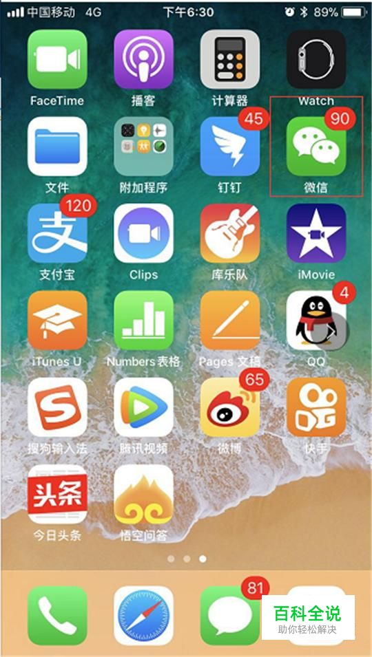 打开手机,找到手机的微信功能,见下图