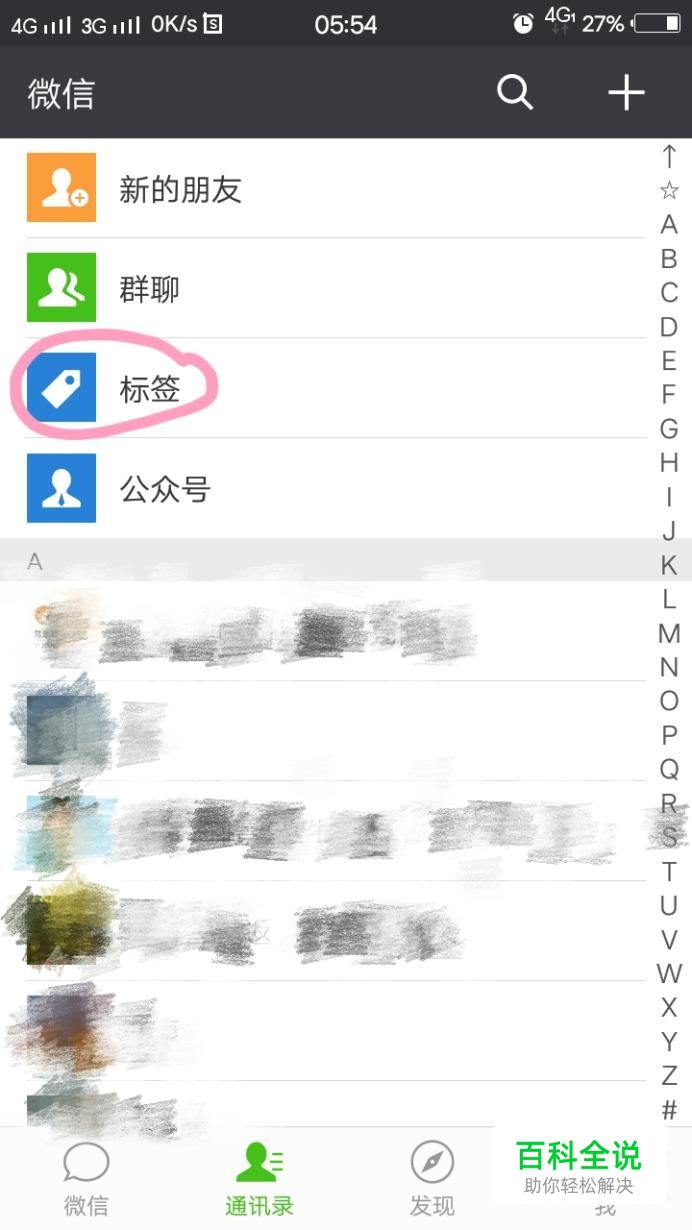 手机微信是我们常用的社交工具,发朋友圈时有时需要屏蔽一些好友,所以设置分组标签。当想要删除某个标签时,操作步骤如下。