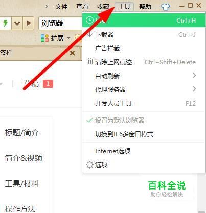 首先打开浏览器界面点击右上角“工具”。如图