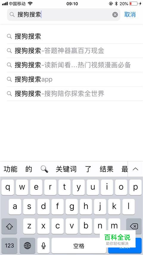 然后输入搜狗搜索并点击搜索,如下图所示。