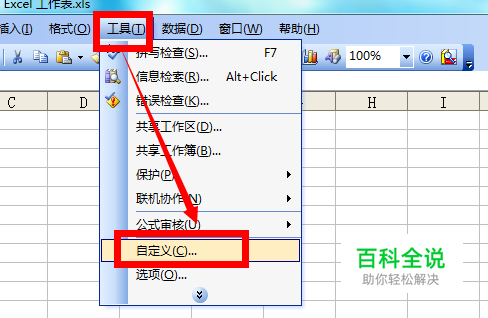 在菜单栏上,点击 工具按钮,选择 自定义选项