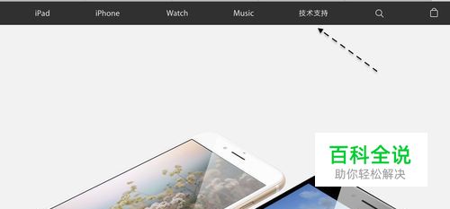 首先请访问苹果的官网,点击页面顶部的 “技术支持”栏目进入,如图所示