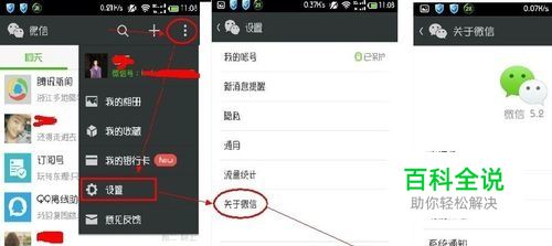打开微信首页,找到右上角的省略号标志,点击,如何弹出页面并以此选择 【设置】->【关于微信】->【帮助与反馈】,打开。