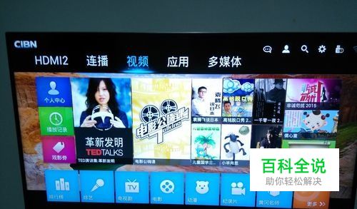 首先连接好电源与网络,打开电视,如图所示