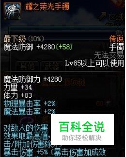 耀之荣光手镯是DNF游戏中刷图非常犀利的手镯,伤害+10%,暴击伤害+5%,而且做起来也不难,是一个非常值得拥有的首饰。