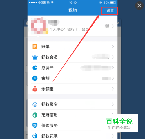 第一步,打开支付宝在我的界面点击右上的设置,点击进入。