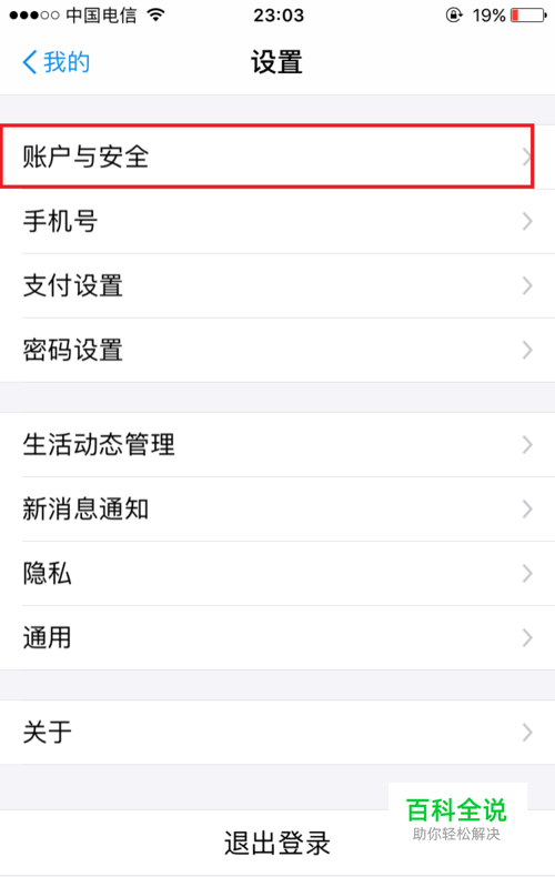 进入设置,点击账户与安全,如图所示。
