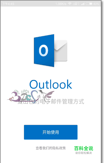 很多人在电脑PC上使用过Outlook作为邮件接收客户端,但在手机上使用的Outlook手机版本可能比较少,因为手机上的邮件接收客户端很多。Outlook手机版非常简洁,如下图中的启动画面,接下来看看手机Outlook怎么添加邮箱使用。
