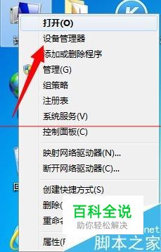 右键点击桌面的【计算机】图标,选择【设备管理器】选项,点击打开