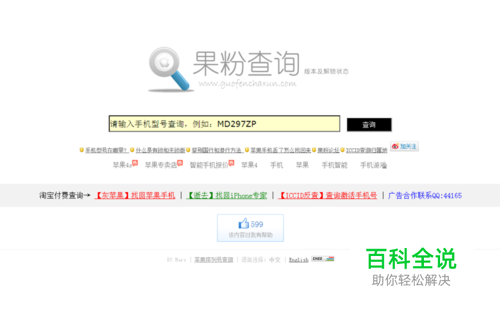 搜狗搜索“果粉有锁无锁查询”,进入型号查询页面。