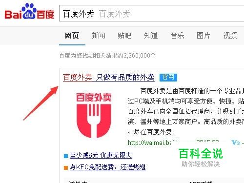 在百度上搜索“百度外卖”,点击进入百度外卖官网。(如下图)