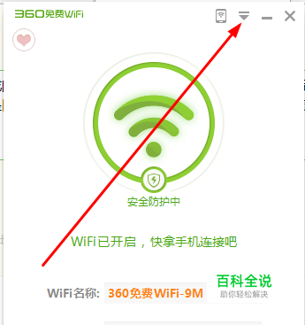 启动免费WiFi后,点击桌面右下角的图标,调出设置对话框,如图所示,点击箭头指向的地方。