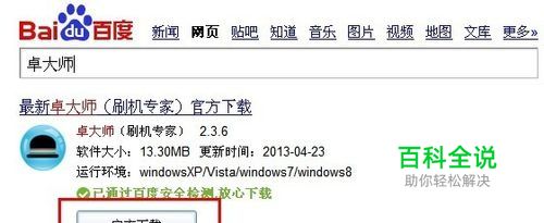 如果电脑上没有安装“卓大师PC版”,可以去网上下载一个进行安装。在此只需要以关键字“卓大师”进行搜索即可找到。