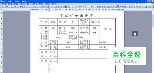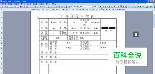 首先将要填写的word文档打开,将要填写的具体内容填好。小编自己设计了一下,主要是为了本经验加以说明。可以看到在右上角的地方需要插入自己的一寸照片。