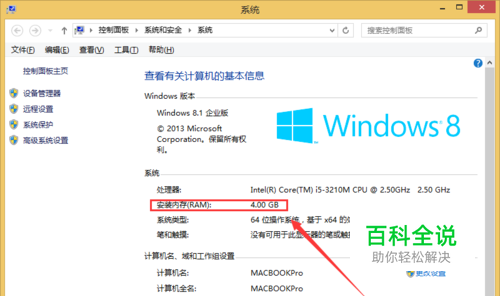 进入后找到安装内存后面显示的是电脑内存