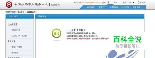 打开12306网站的个人首页,在收到中奖邮件的几个工作日之后,会出现如图所示的一行字,点击红色框框内的文字。