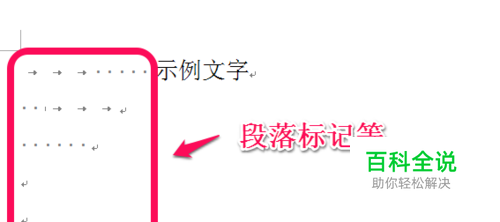 首先,我们看,如图,我做一个示例,word中段落标记、空格、制表符等,那怎么让这些符号都 显示或着不显示呢?我们往下看。