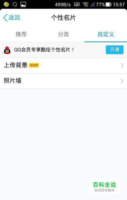 点击自己的背景照片墙,进入到个性名片,这里有推荐、分类、以及自定义分类,如图