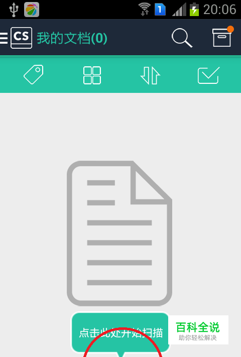安装扫描全能王,打开它。点击照相机图标打开扫描