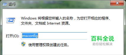 打开电脑,按快捷键win+R打开如下界面,输入 msconfig,然后回车 。 (也可以点击 开始——所有程序——附件——运行)