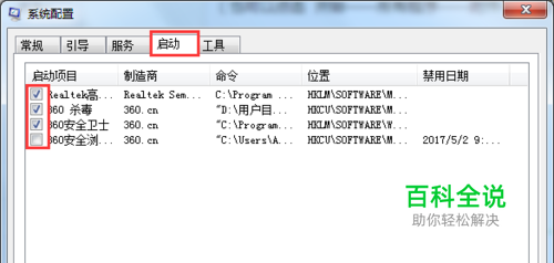 点击“启动”,在列表中将不需要开机自动启动的软件名称前的 √ 去掉,按“确定”。如下图