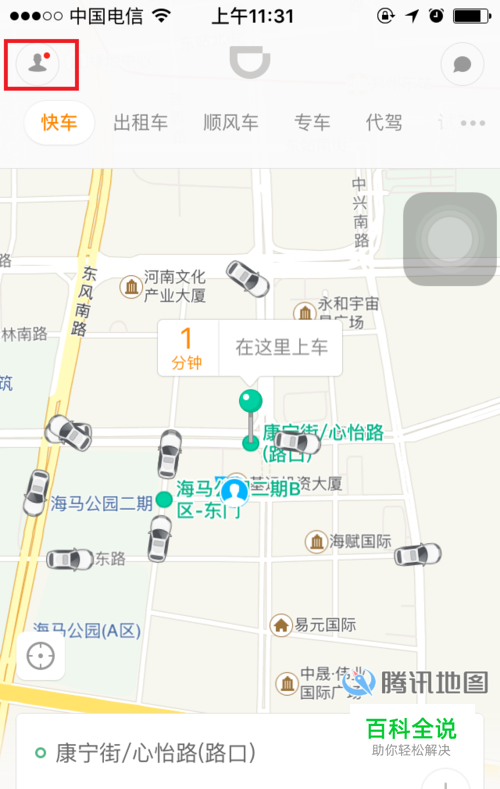 选择需要乘坐的车的种类(一般选择快车,有其他需求也可以选择出租车,顺风车,专车,代驾等),点击叫车,